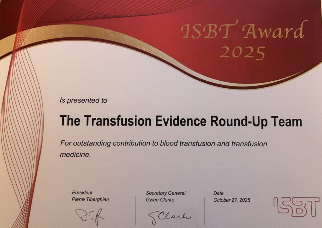 CONGRATULATIONS Transfusion Evidence Round Up Team on your ISBT Award